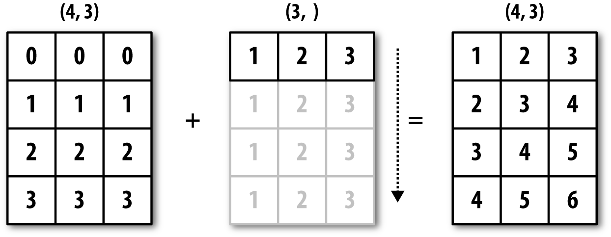 ndarray 的大小将创建一个新数组并删除原来的数组。NumPy 的高效得益于向量化和广播: