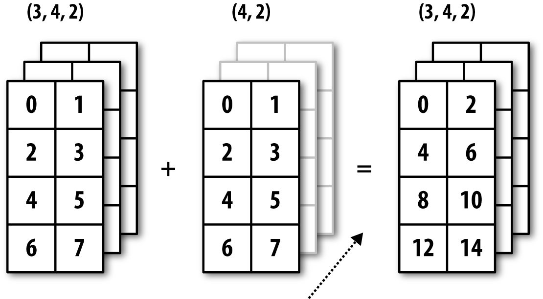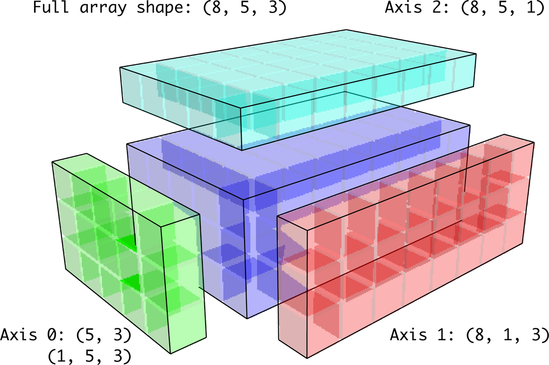 下图为对沿着轴将一个二维数组加到三维数组的示意: