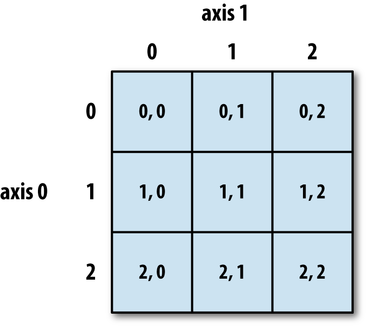 许多关于计算整个数组统计值或关于轴向数据的数学函数,可以作为数组类型的方法被调用。你可以使用聚合函数,比如 sum, mean 和 std,既可以使用数组实例的方法,也可以使用顶层的 NumPy 函数。
